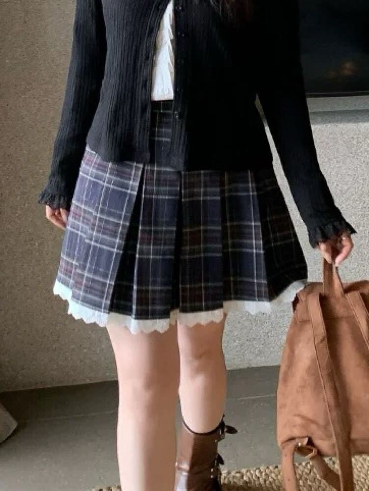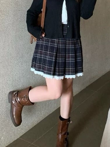 ジャケットやブラウスと合わせた韓国っぽスクールスタイルや、大きめニットからチラ見せしてロングブーツと合わせたスタイルも可愛いですよ♡