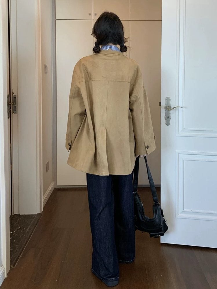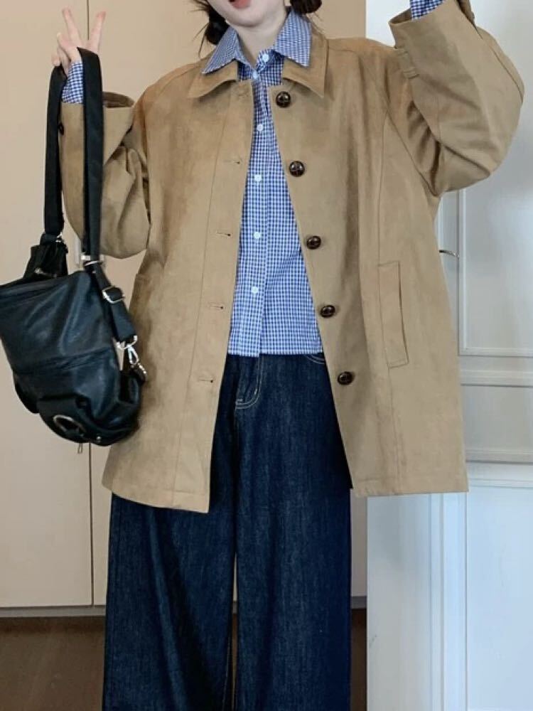 羽織るだけでセンスアップ♡ ステンカラーハーフジャケット 秋冬 お洒落 大人 上品 可愛い カジュアル きれいめ ボタン アウター おでかけ オフィス 体型カバー 大きいサイズ 韓国 CH10118