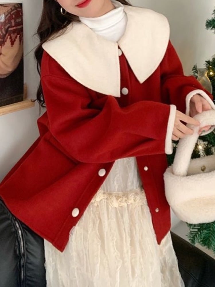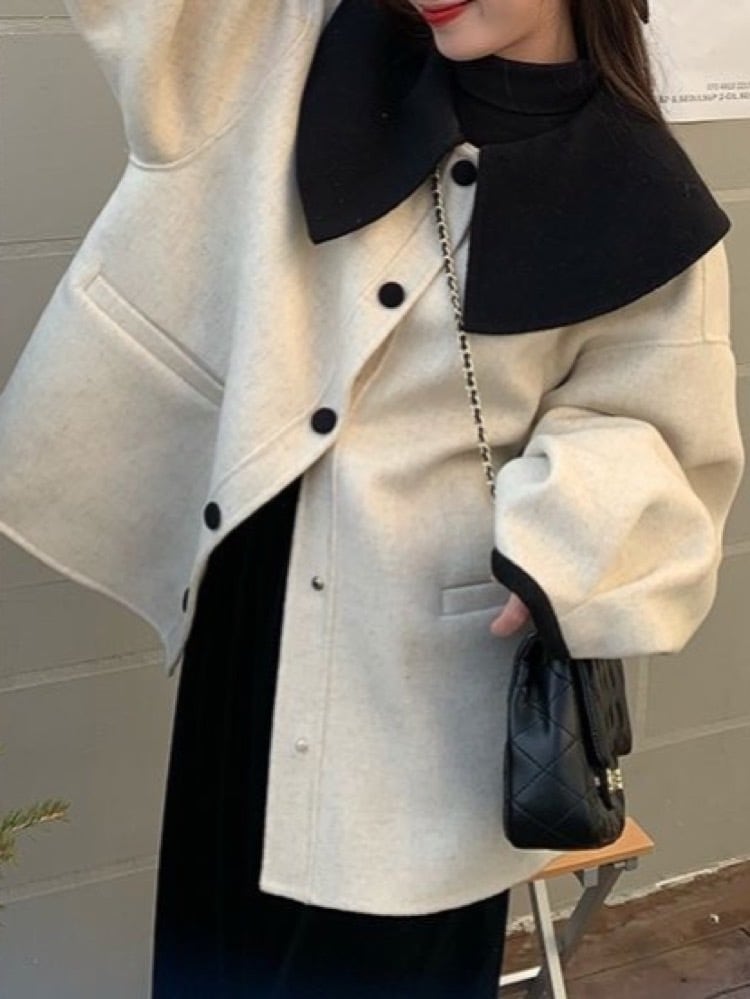 大襟×モノトーンで叶えるシンプルエレガンス レディライクビックカラーハーフコート 大人可愛い お出かけ デート カジュアル きれいめ 体型カバー 大きいサイズ 韓国 CH10207
