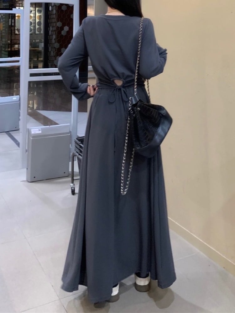 洗練されたシルエットと背中の肌見せデザインが特徴のセットアップ。 ワンピースのような一体感ながらもセットアップならではの自由なコーディネートも楽しめます。 背中のカットアウトデザインで抜け感をプラスし、エレガントさの中にさりげないセクシーさを演出。 軽い素材感とフレアシルエットが動くたびに揺れる、美しいラインを描きます。 カジュアルシーンからディナーまで幅広く活躍する万能アイテム。