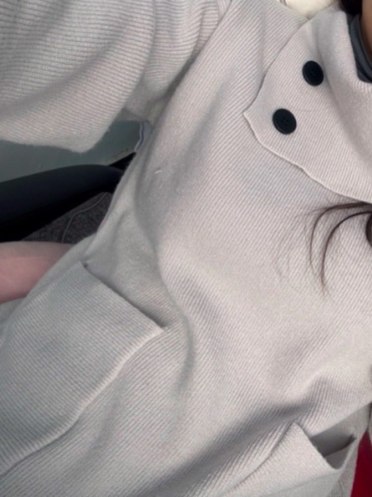 首元のボタンディテールがさりげないアクセントを加え、上品な印象に。