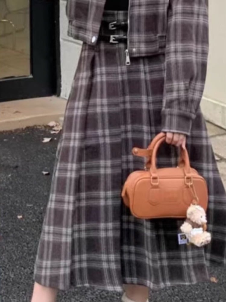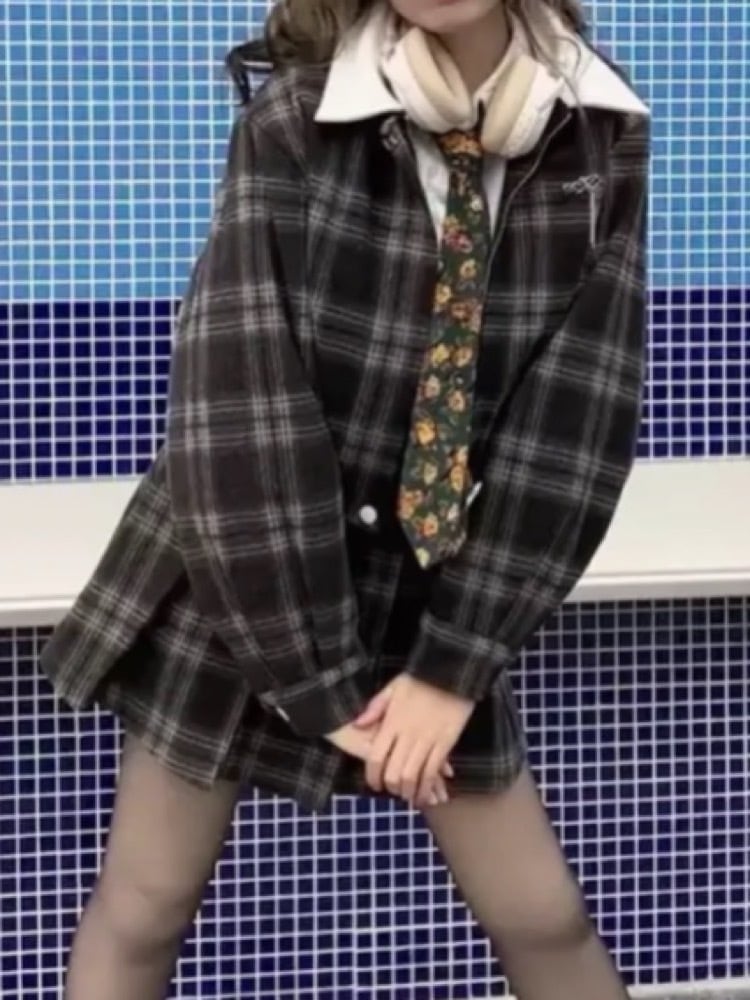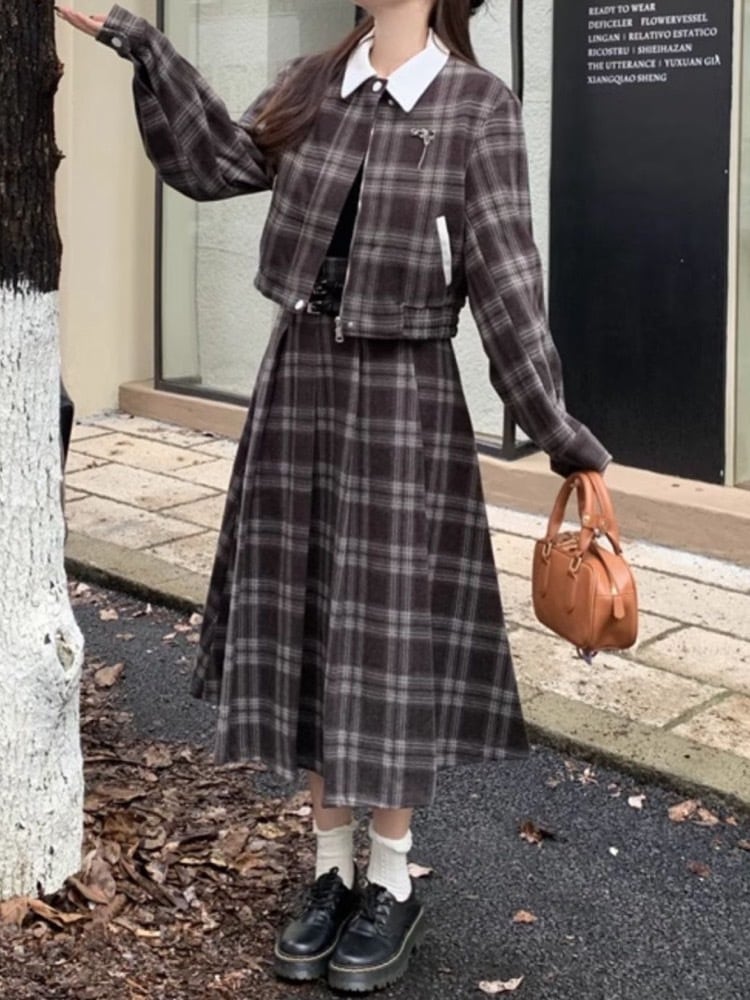 丈選びで差をつける!クラシカルチェックセットアップ ジャケット スカート クラシック モダン 大きいサイズ 韓国 CH10243