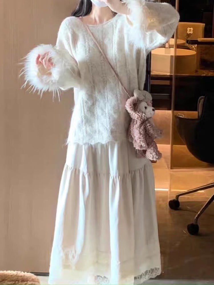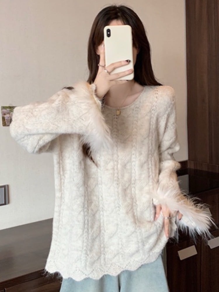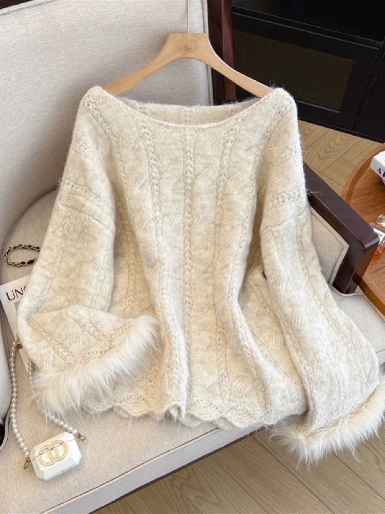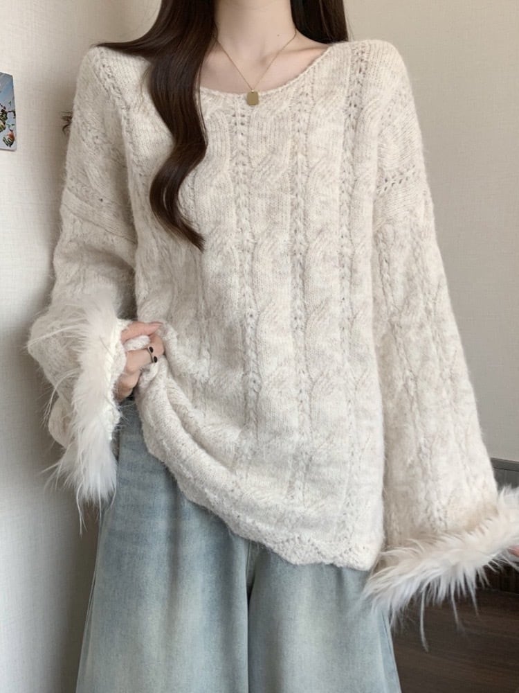袖先から魅せる愛らしさ♡ 袖ふわふわファーニット 秋冬 おしゃれ かわいい 上品 カジュアル きれいめ ニット お出かけ 体型カバー 大きいサイズ 韓国 CH10245
