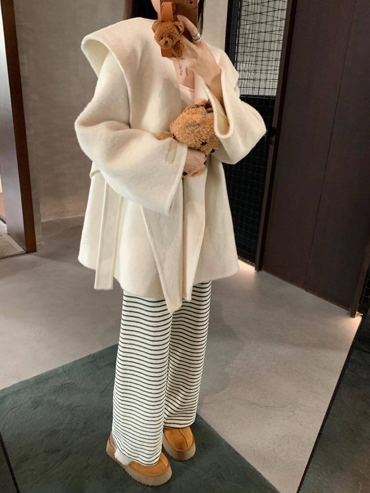 見た目も着心地もあたたか♡ フーディガウンコート 秋冬 ミドル丈 お洒落 大人かわいい こなれ感 カジュアル きれいめ おでかけ 体型カバー 大きいサイズ 韓国 CH10154