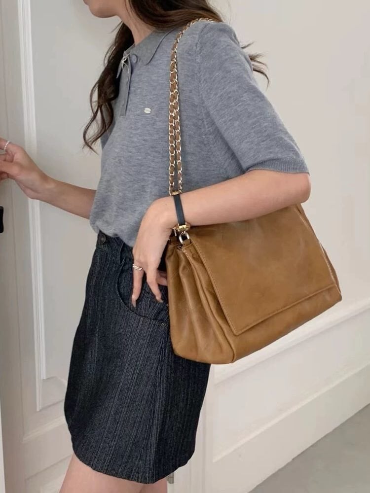 シンプルながら、しっとりソフトなPUレザー×メタリックチェーンが都会的でモダンな雰囲気を演出♪