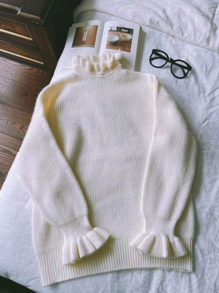 上品フリルで魅せる大人フェミニン フリルニットプルオーバー フリル お洒落 着映え 大人可愛い 上品 カジュアル ガーリー きれいめ オフィス 細見え 大きいサイズ 韓国 CH10308