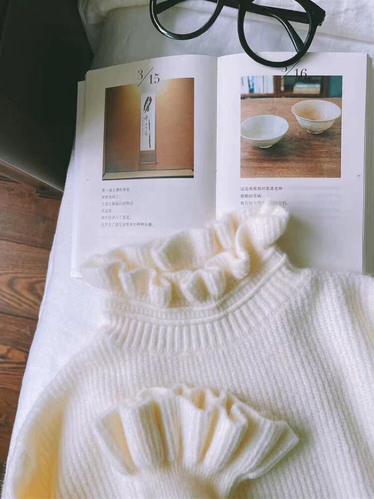 程よいプチハイネックとフリルスリーブが、大人にもぴったりな上品で可愛らしい印象です♪