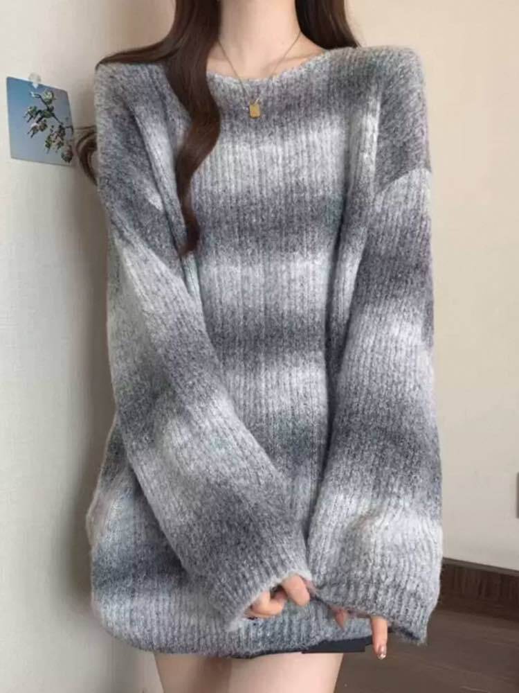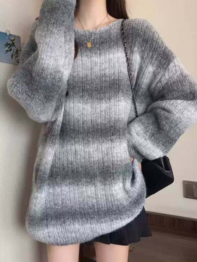 周囲と差のつくカジュアルスタイル グラデーションカラーボーダーニット 大人可愛い おしゃれ 着映え カジュアル きれいめ 体型カバー大きいサイズ 韓国 CH10348