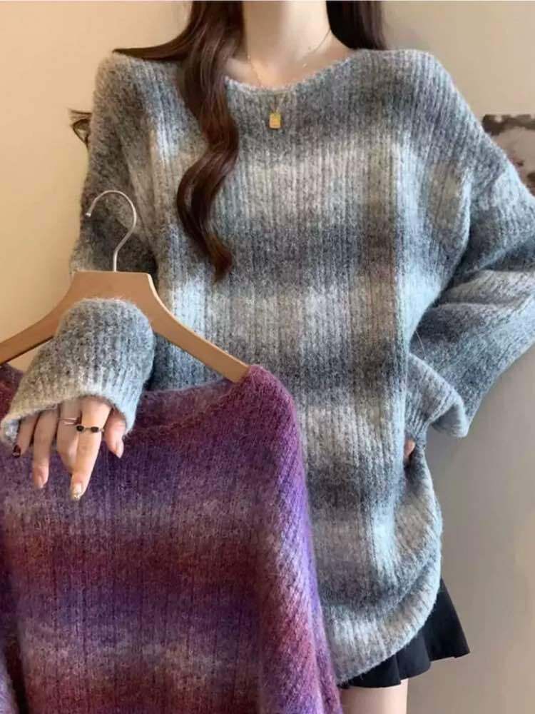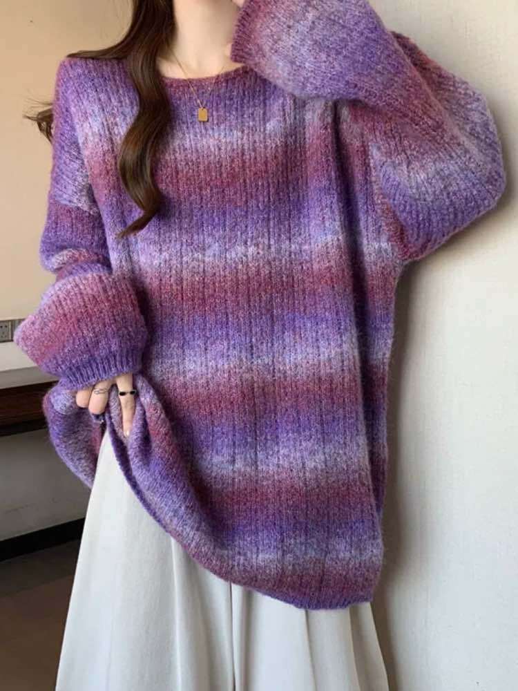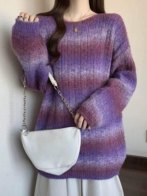ふわふわのカラーニットでシャレ見え♡グラデーションカラーボーダーニットです。