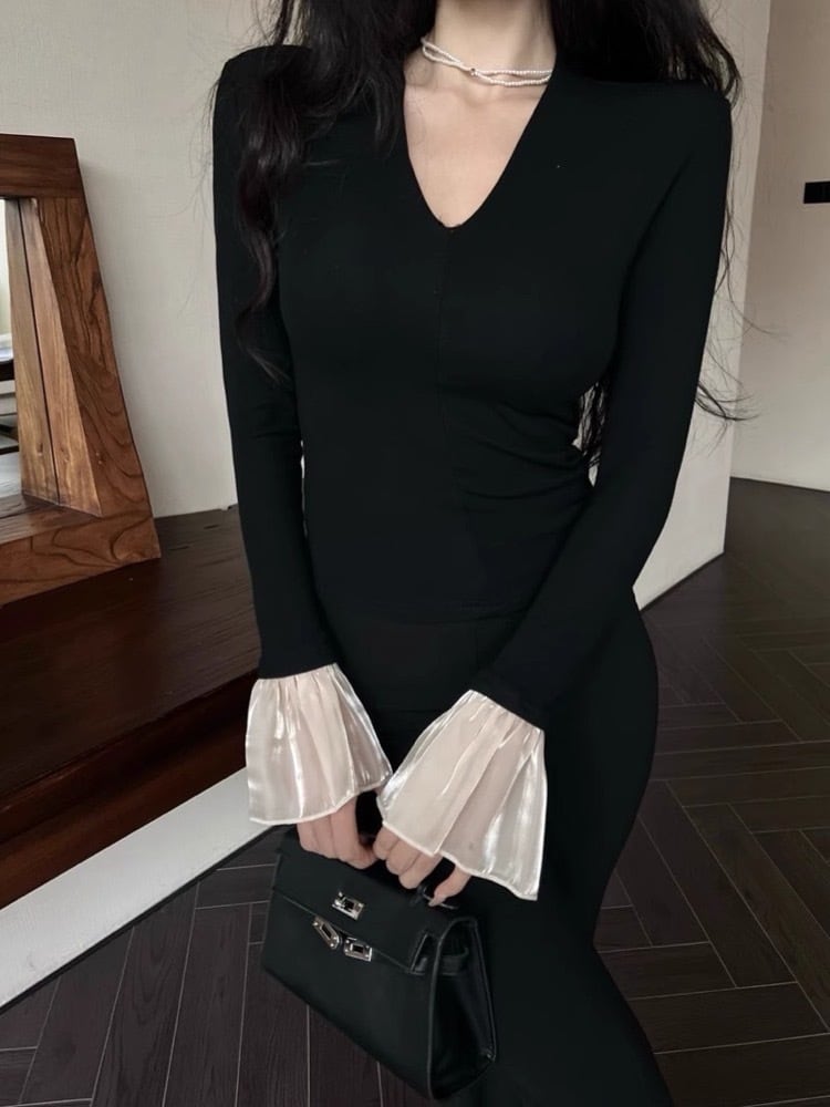 さりげなく差がつく計算されたフリルデザイン 襟が選べる袖フリルニット 大人可愛い おしゃれ 着映え きれいめ 体型カバー大きいサイズ 韓国 CH10397