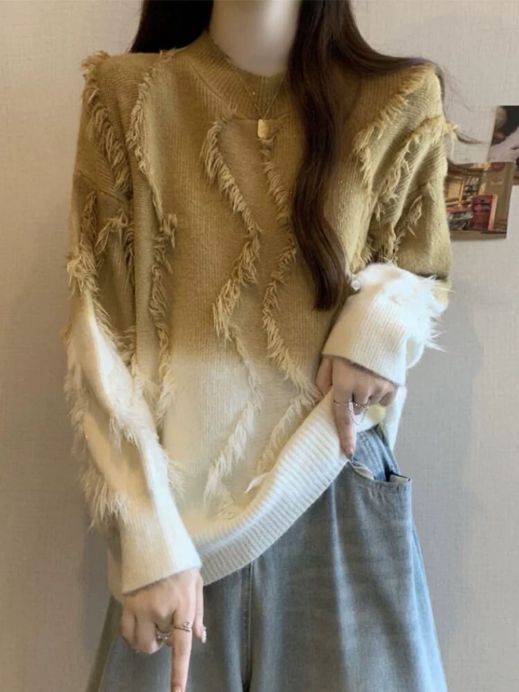 表面感のある着映えデザインで周囲を魅了 グラデーションフリンジニット 秋冬 フリンジ グラデーション お洒落 大人 可愛い カジュアル きれいめ 個性的 体型カバー 大きいサイズ 韓国 CH10357