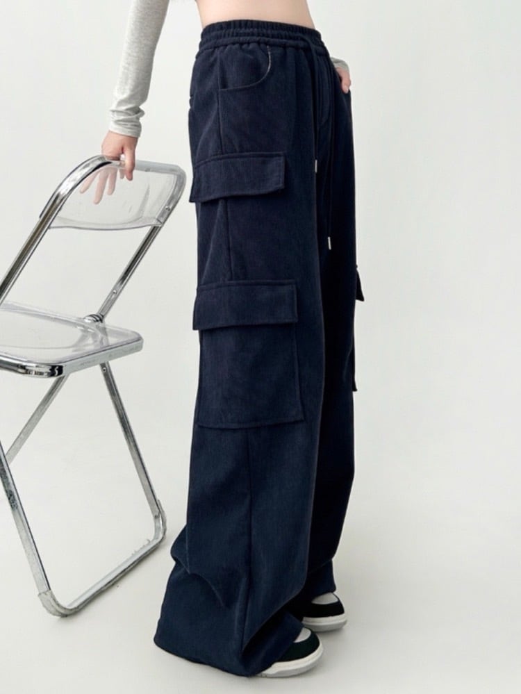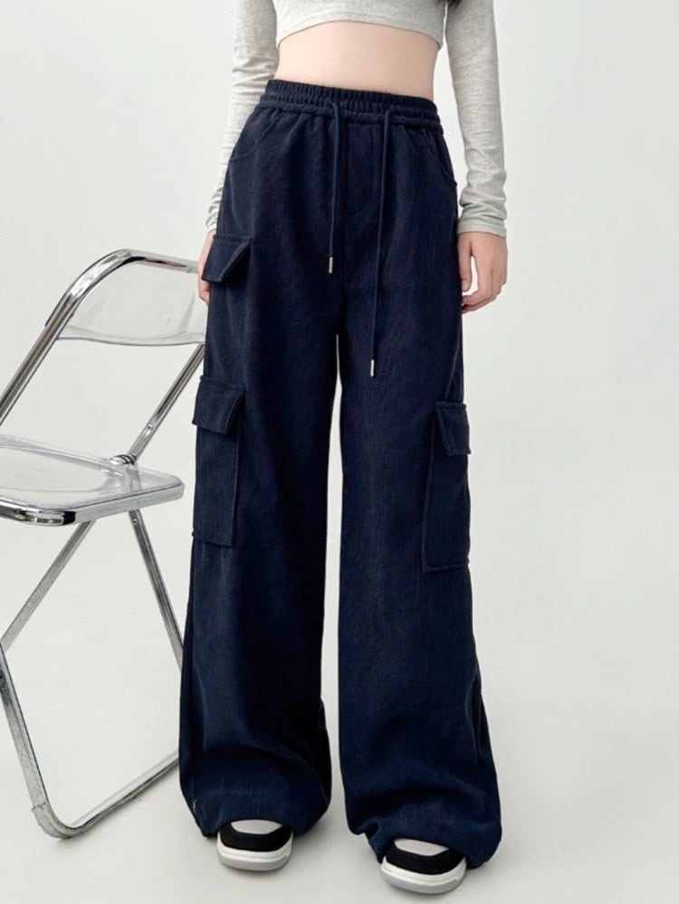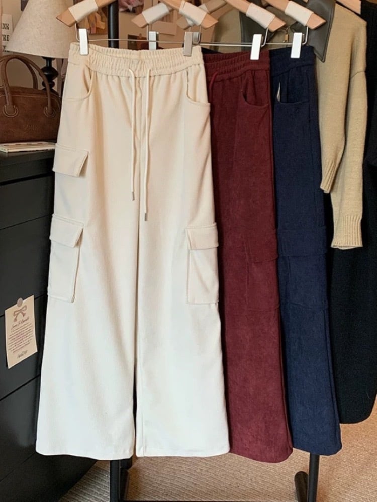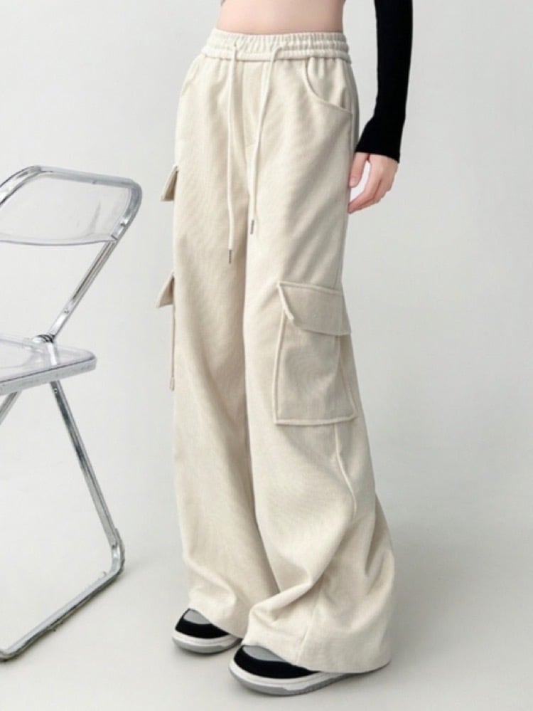 大人の抜け感スタイル ゆったりワイドカーゴパンツ ウエストゴム シンプル カジュアル おうちコーデ 大人かわいい 大きいサイズ 韓国 CH10326