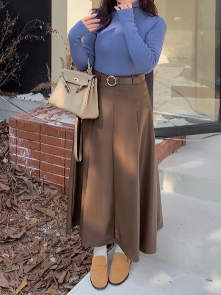 Aラインシルエットが美しく広がり、動くたびにエレガントな印象を演出します。重たくなりがちなレザー素材も、ロング丈×ハイウエストでスタイルアップ効果抜群◎